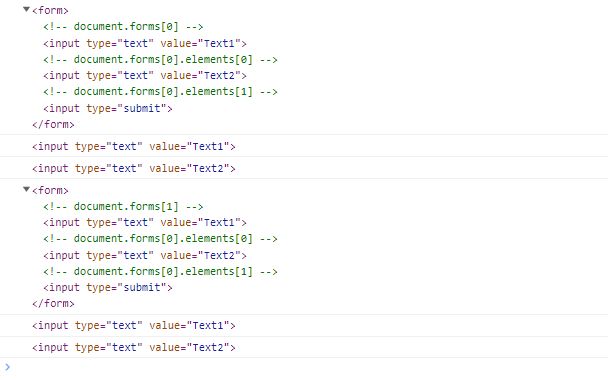 <input type=text value='Text1'> <!-- document.forms[0].elements[0] -->