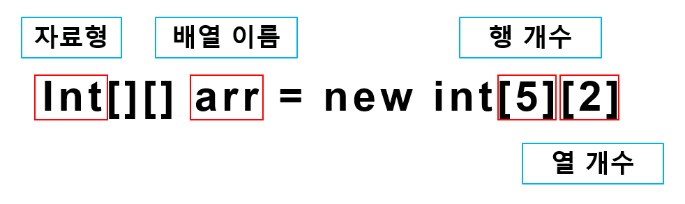 이차원 배열을 선언하는 코드의 구조