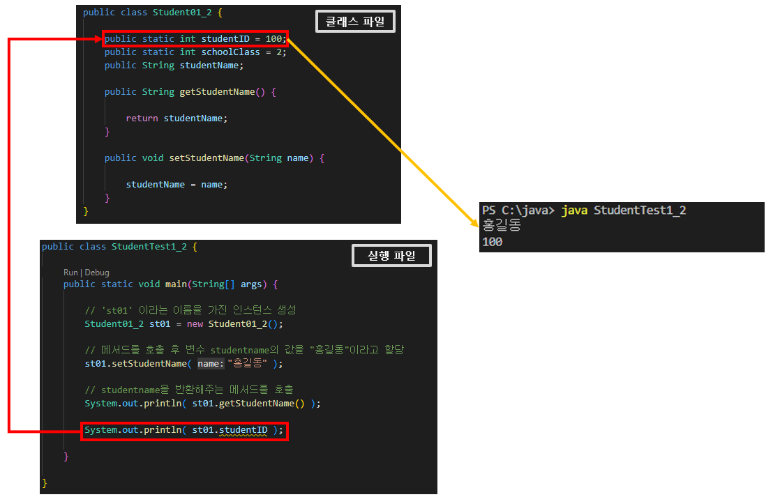 // 메서드를 호출 후 변수 studentName의 값을 "홍길동"이라고 할당