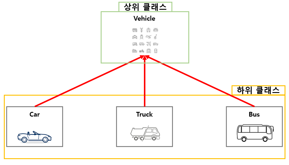 IS-A 관계(is a relationship, inheritance)의 일반적인 개념과 구체적인 개념의 관계입니다.