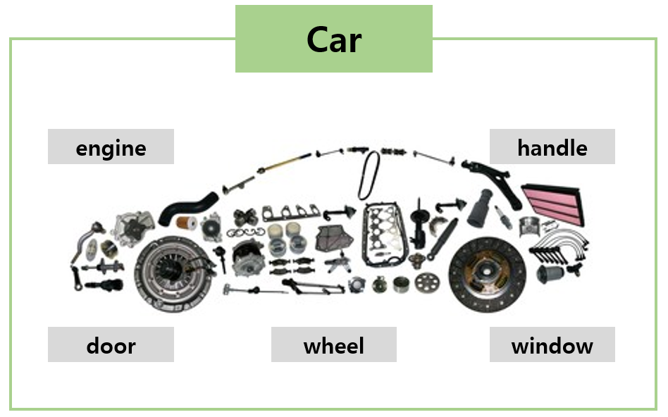 아래 그림은 자동차에 조립되어 있는 부품들을 표현한 사진입니다.
