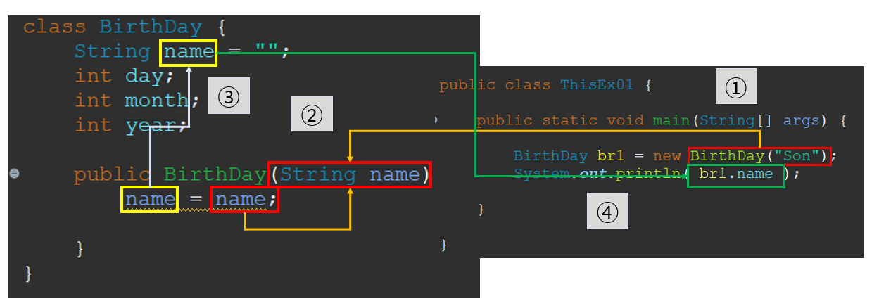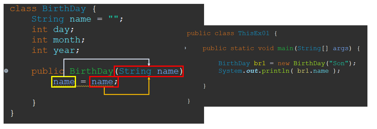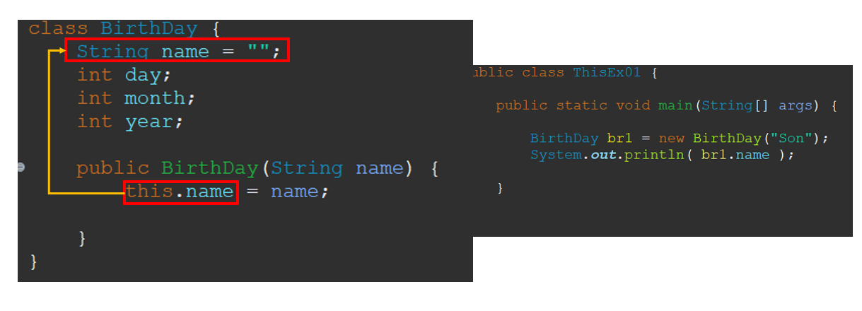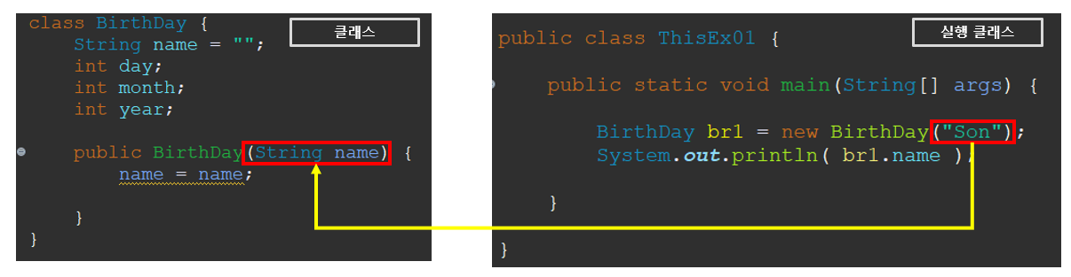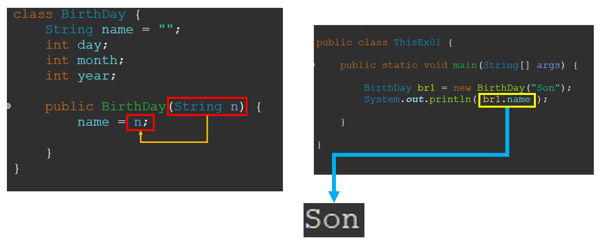 ③ "BirthDay" 클래스의 멤버 변수 "name" 을 "Son"으로 초기화