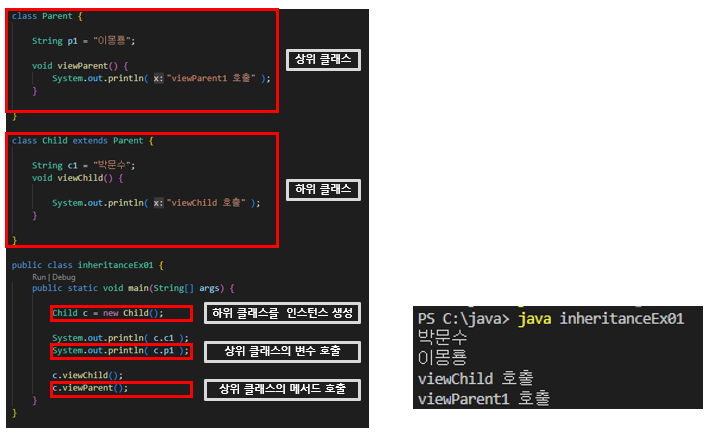상위 클래스의 변수와 메서드 호출은 문제 없이 가능합니다.