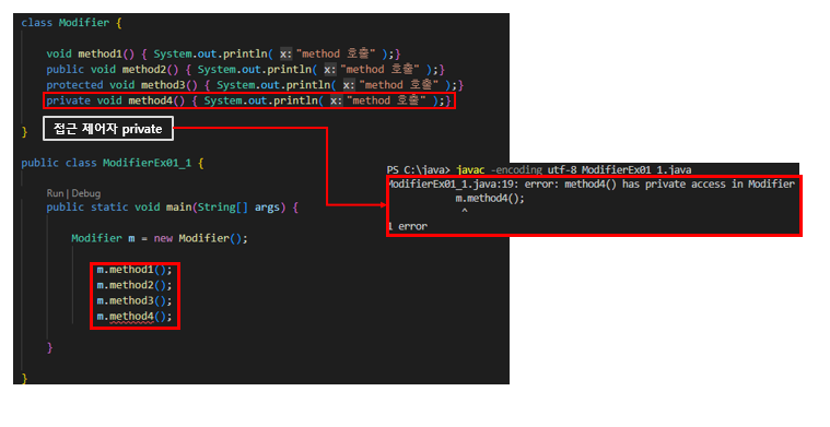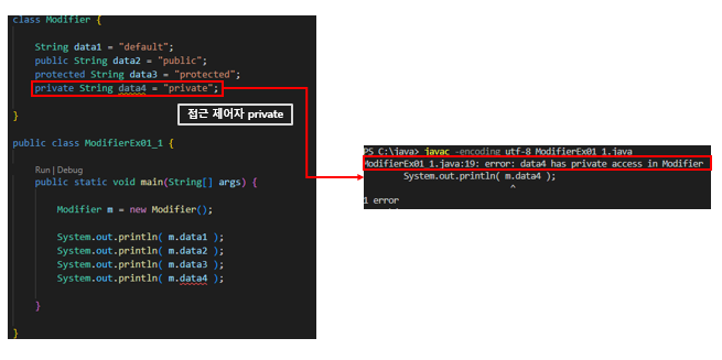 멤버 변수에 private 접근 제어자를 작성해주고, 호출 한다면?
