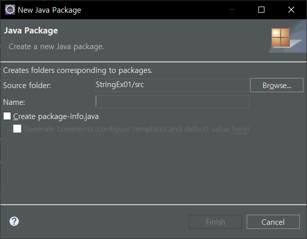 패키지를 만들면 프로젝트 하위에 물리적으로 디렉토리가 생성됩니다.