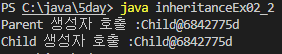하위 클래스의 생성자와 상위 클래스의 생성자가 호출되어 위와 같이 출력된 것을 확인할 수 있습니다.
