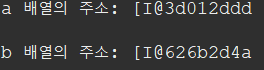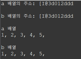 원본 a 배열과 이를 복사한 b배열이 잘되었는지 확인을 위해 아래 출력문을 통해서 확인해보겠습니다.