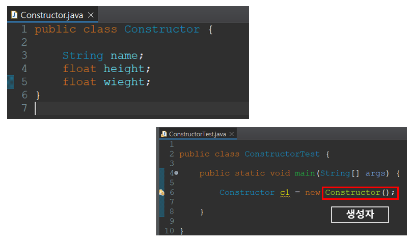 생성자는 이러한 상황에서 멤버 변수나 상수를 초기화하는 일을 합니다.