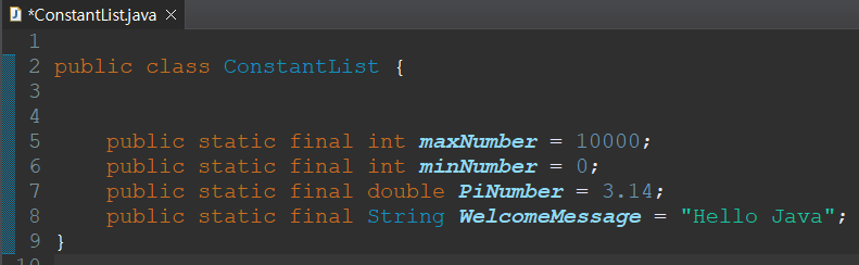 따라서, 아래와 같이 하나의 클래스에 public static final로 선언하는 것이 좋을 겁니다.