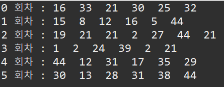 세번쨰, 6개의 숫자를 출력하는데