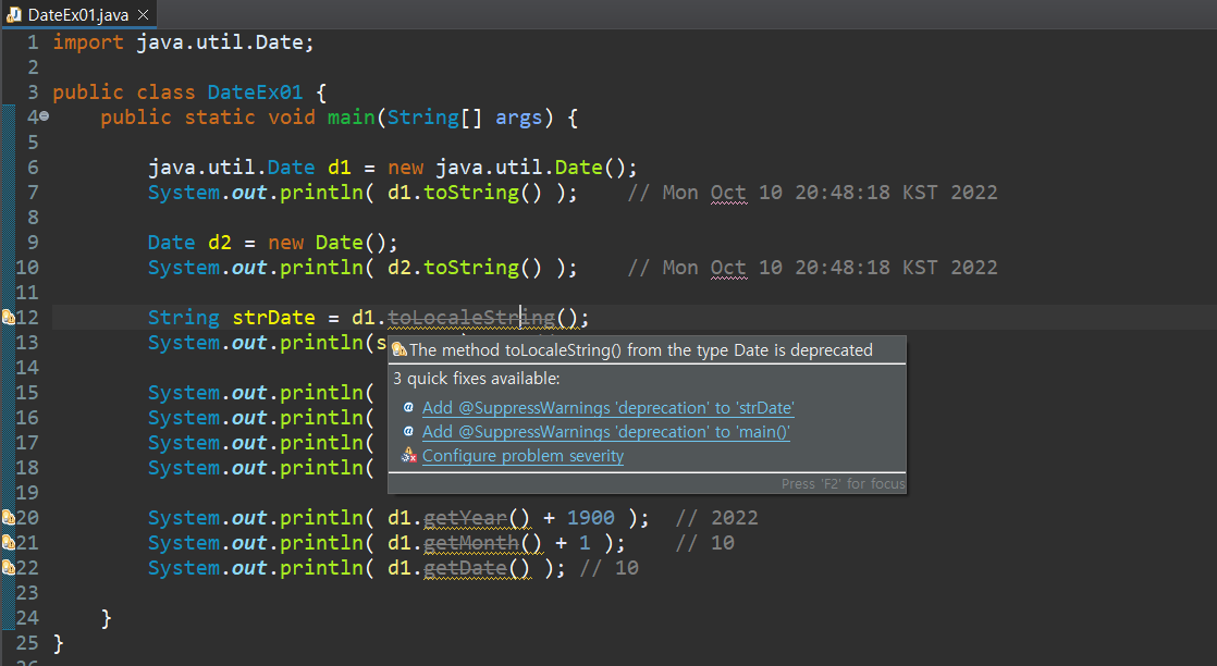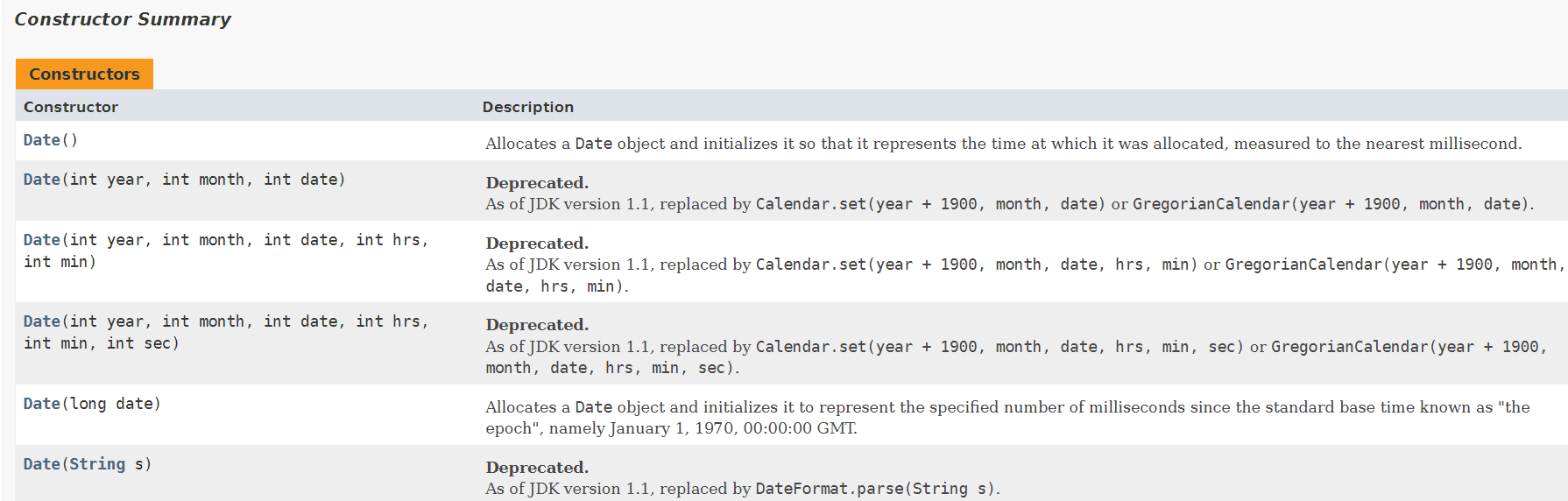 Date 클래스에서 정의된 생성자 및 메서드는 Deprecated,