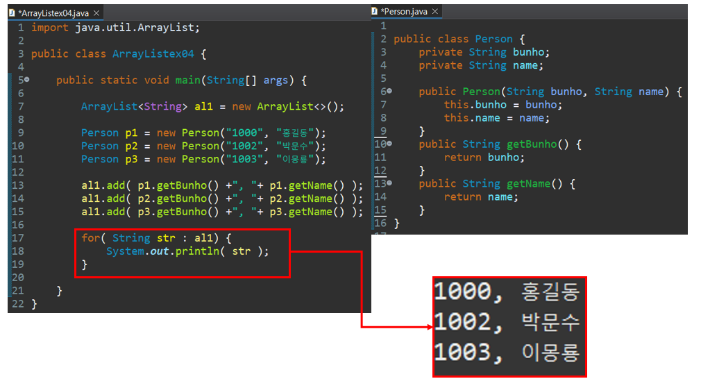 System.out.println( al1.toString() ); // [홍갈동, 박문수, 이몽룡]