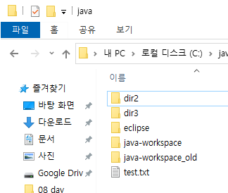아래와 같이 java라는 디렉토리 안의 test.txt 파일이 있습니다.
