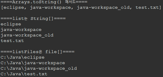 System.out.println("\n" + "====listFiles은 file[]====");