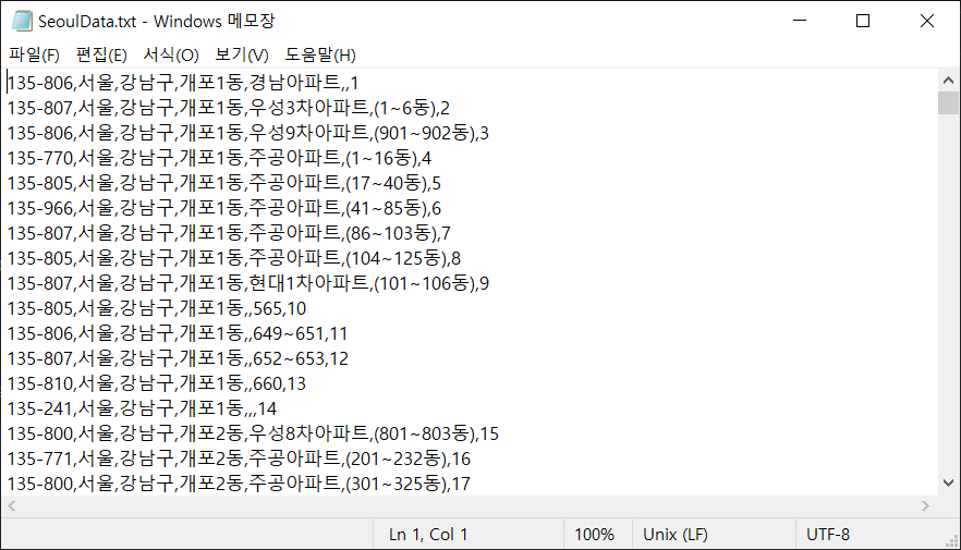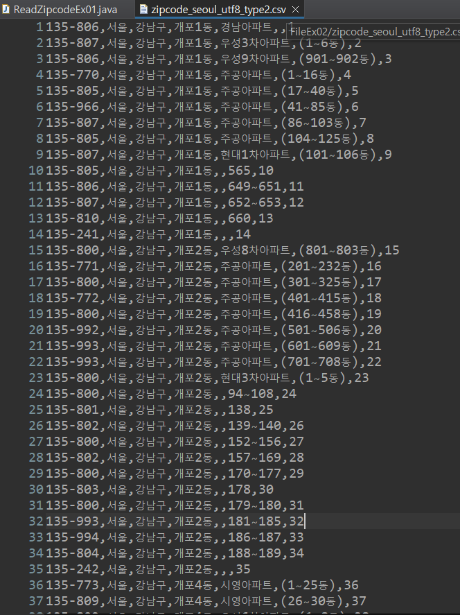 br = new BufferedReader( new FileReader("./zipcode_seoul_utf8_type2.csv"));