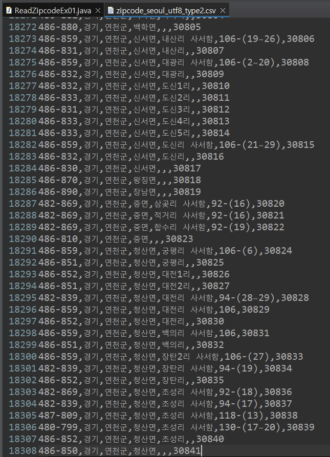 우선, 1번부터 18,308번까지의 데이터를 BufferedReader를 이용해서 consol에 출력해보겠습니다.