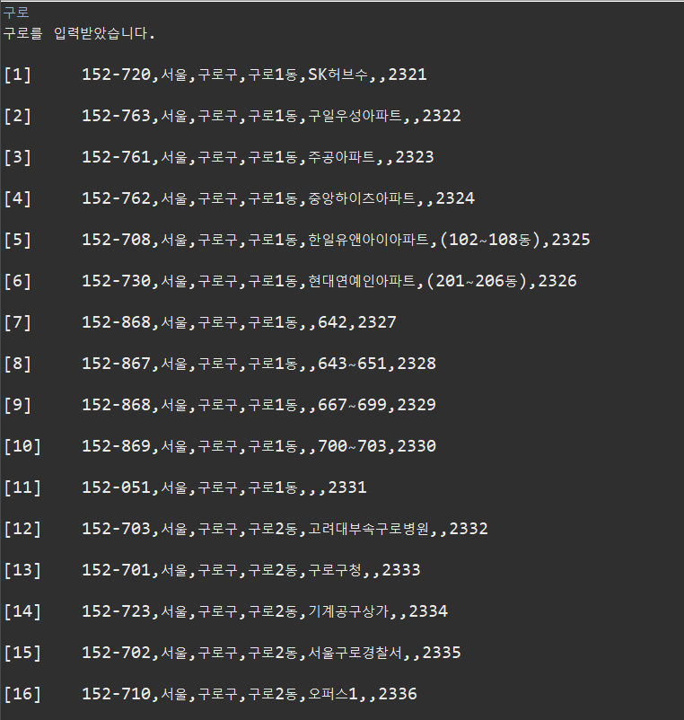 주소 키워드를 입력받으면 출력해주는 프로그램