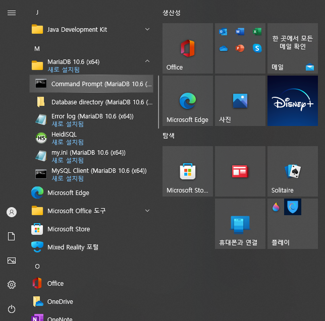 설치된 MariaDB 10.6(x64) 폴더 안 > Command Prompt 실행