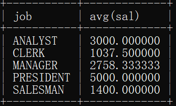 group by 컬럼명, 직업을 그룹화하여  평균 연봉을 출력