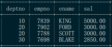 where sal in (select max(sal) from emp group by deptno) order by deptno;