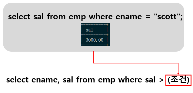 select ename, sal from emp where sal > (조건)