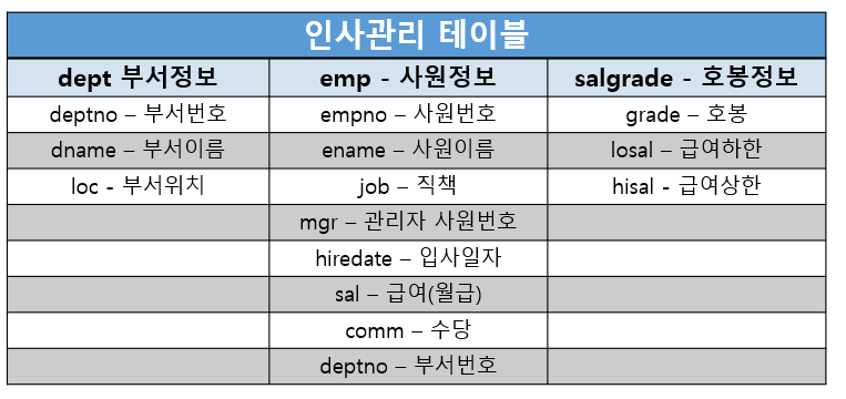 이번에는 사원정보(emp) 테이블과 호봉정보(salgrade) 테이블을 결합해보겠습니다.