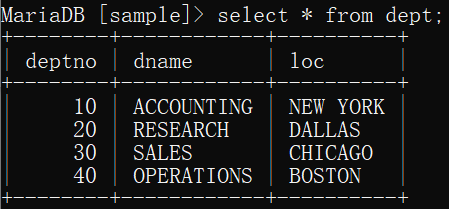 부서정보 테이블의 데이터를 전부 출력해보겠습니다.