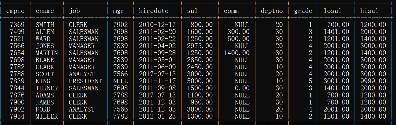 -> from emp inner join salgrade;