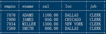 select empno, ename, sal, loc, job