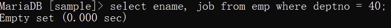 40번 부서에서 근무하는 사원의 사원이름, 직책을 출력해보겠습니다.