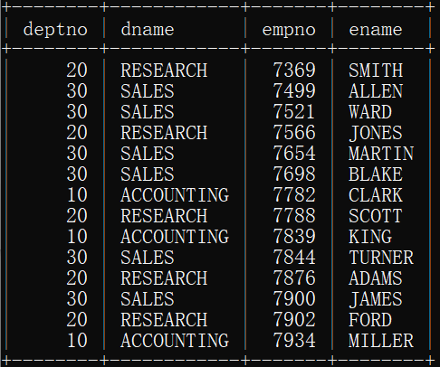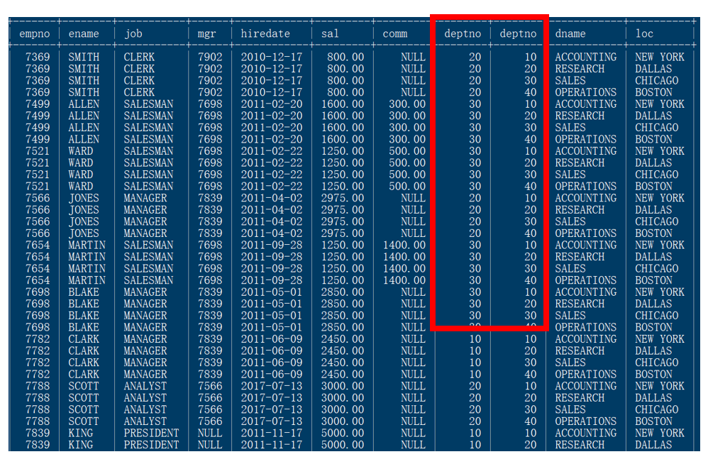 -> where emp.deptno = dept.deptno;