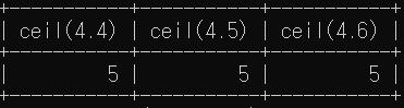 select ceil(4.4), ceil(4.5), ceil(4.6);