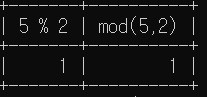 select 5 % 2, mod(5,2);