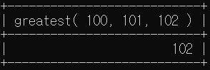 greatest(숫자 1, 숫자 2,....), 최댓값 출력