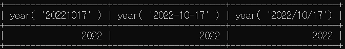 select year( '20221017' ), year( '2022-10-17' ), year( '2022/10/17');