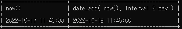 현재 날짜에 2일(2 day) 더하기( date_add == adddate )