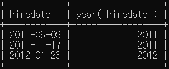 select hiredate, year( hiredate ) from emp where deptno = 10;