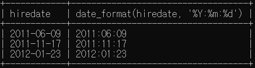 select hiredate, date_format(hiredate, '%Y:%m:%d') from emp where deptno = 10;