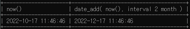 현재 날짜에 2달(2 month) 더하기( date_add == adddate )