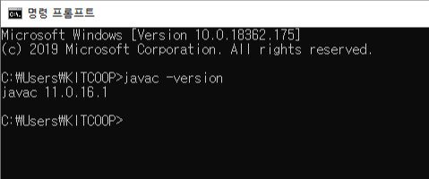 설치 후 cmd 실행 후 "javac -version" 명령을 통해 설치 확인