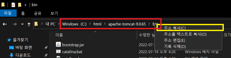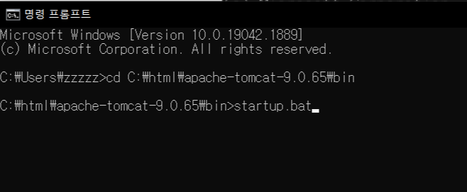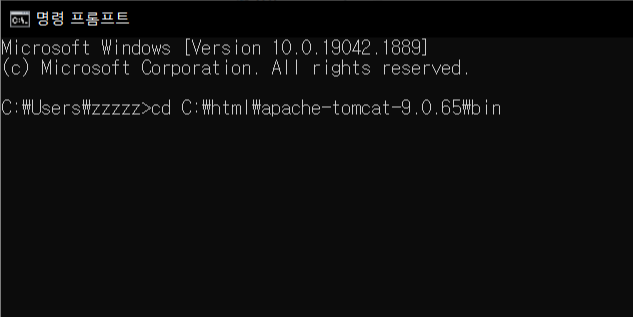 cd C:\html\apache-tomcat-9.0.65\bin 입력