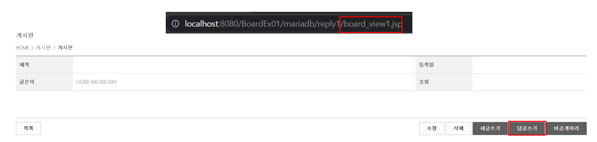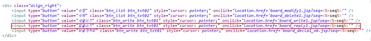 1. board_view1.jsp 파일에서 답글쓰기 btn 클릭