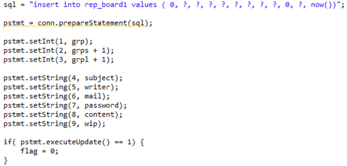 sql = "insert into rep_board1 values ( 0, ?, ?, ?, ?, ?, ?, ?, ?, 0, ?, now())";'Java' 카테고리의 다른 글