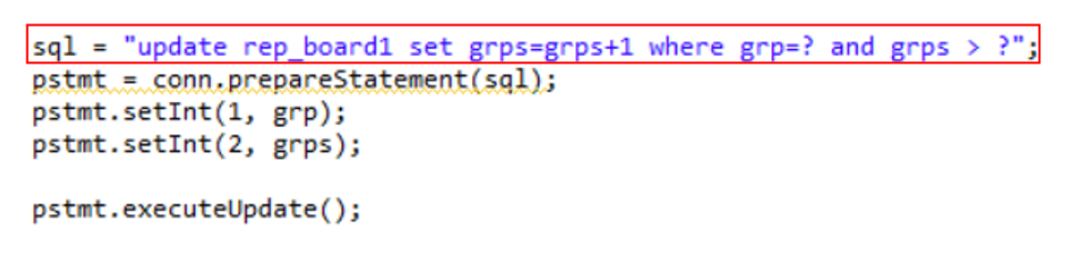 sql = "update rep_board1 set grps=grps+1 where grp=? and grps > ?";