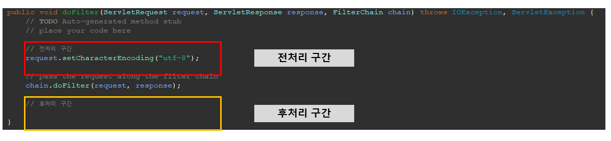 를 기술한다. 혹시나 후처리 구간에 이를 작성했을 떄는 요청을 받은 후 인코딩 하겠다는 의미여서 한글이 깨진다.