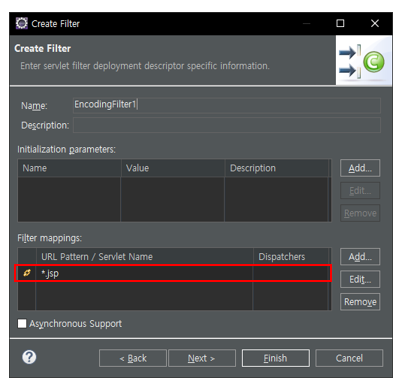 url-mapping을 해준다. 확장자가 .jsp인 파일을 요청하는 모든 페이지에 "utf-8"의 인코딩 방식을 사용하겠다는 것이다.