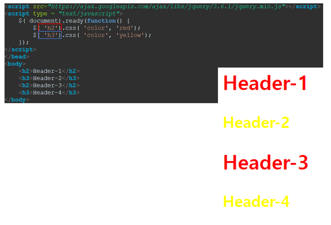 | [JQUERY] 기본형에 대해서 / $( 'h3').css( 'color', 'yellow'); (0) | 2022.12.01 |