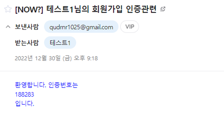 우선 입력한 이메일에 인증번호가 도착했고