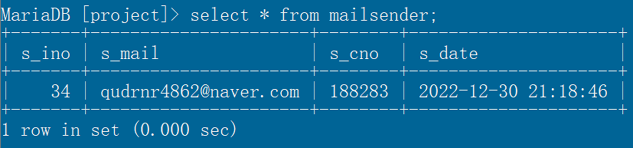 동시에 아래와 같이 DB에도 insert 된 것을 확인할 수 있다.
