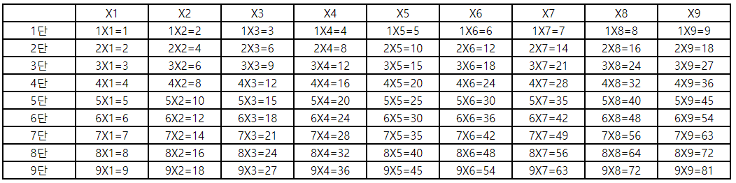 result += "<td>" + i + "X" + j + "=" + (i * j) + "</td>";
